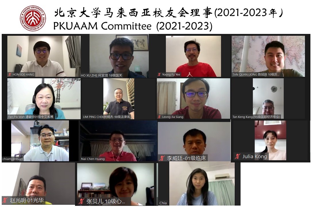 2021年6月26日(周六),北京大学马来西亚校友会举办线上年度会员大会暨理事会改选,来自全球各地30余名校友出席。