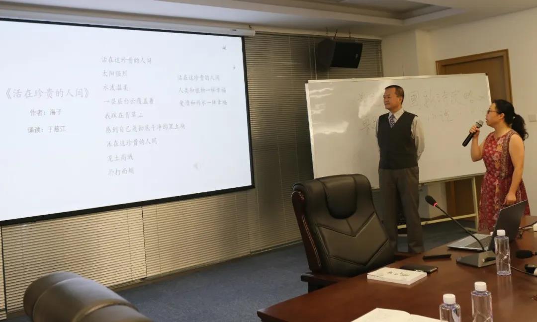 关于诗歌的诵读,他提倡“学人诵读”。所谓“学人”,就是广义的学者、研修者,就是普通的文化人,而不是专事演艺或朗诵的演员;而所谓“学人诵读”,就是要吃透文本,以文本的深度理解和贴切传达为重心,然后以清晰、平和、精准的诵读呈现文本。于教授还以具体的诗篇为例,带领大家体会如何写、怎样诵,让大家体会诗歌之美妙。同时,还邀请听众现场上台诵读海子的诗歌《活在珍贵的人间》,感受诗歌诵读的仪式感。