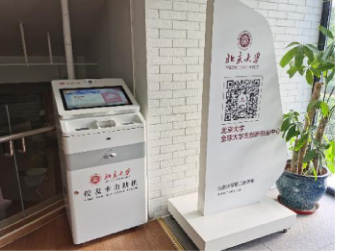 为更好地服务校友,帮助校友随时办理校友卡,北京大学校友会、校友工作办公室正式推出校友卡自助机功能。校友卡自助打印机放置在43号楼2层电梯旁、北京大学全球大学生创新创业中心(二教西北角入口处)。校友卡自助打印机的应用,方便校友返校时可以在指定地点使用身份证通过自助机领取实体版校友卡。