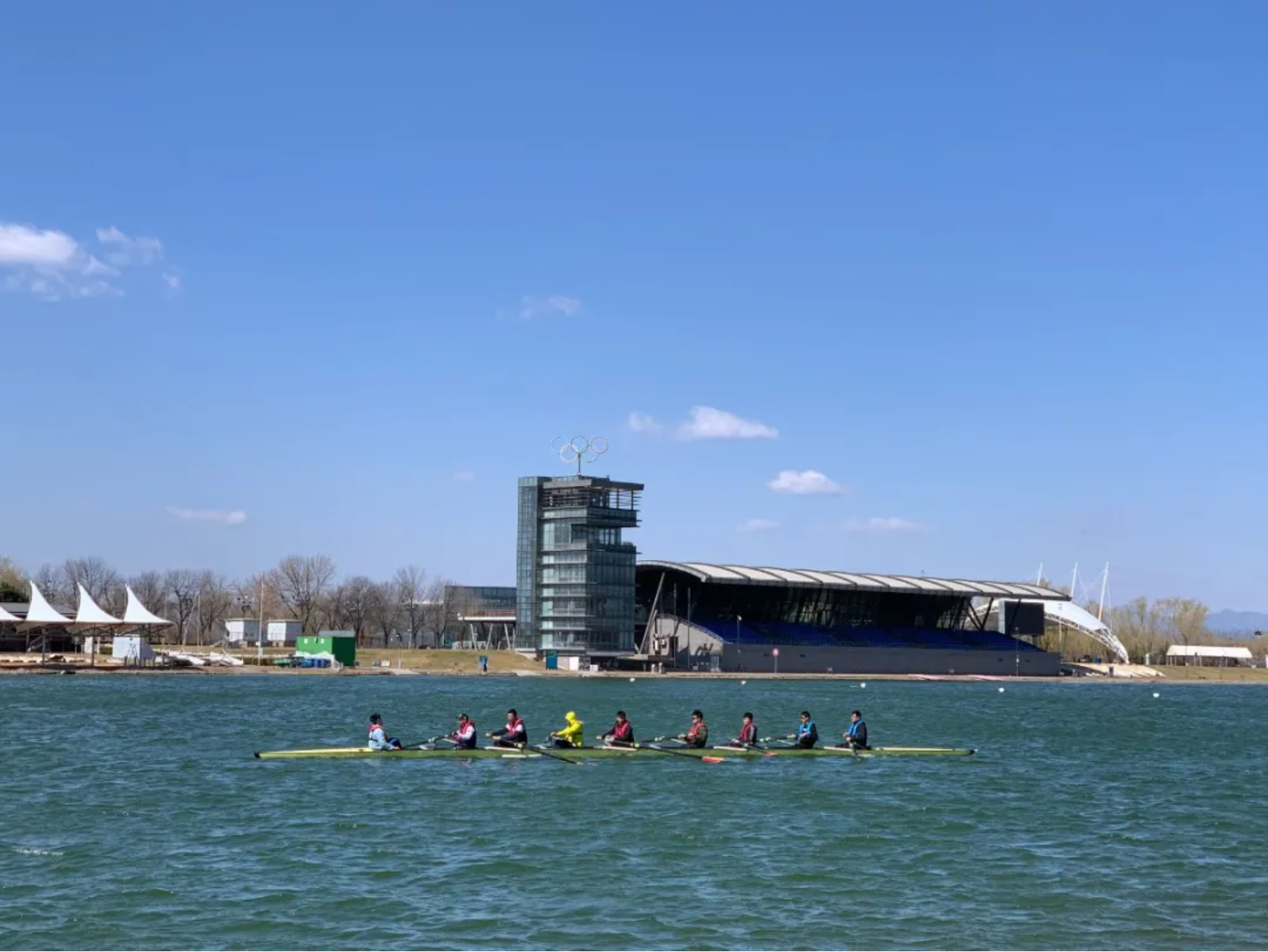 3月21日,春分之后的一天,北京天气晴朗。北京大学校友赛艇俱乐部组织2021年第一次水上训练。