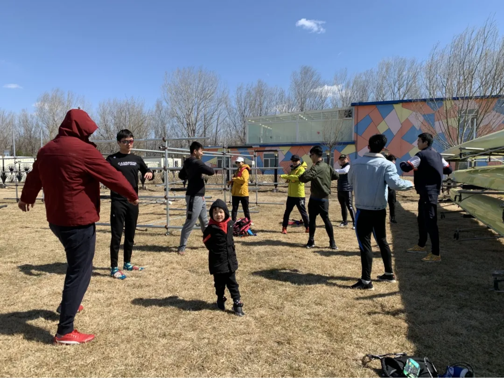 临近中午,气温稍有回升,来自人大赛艇的朋友与北大的同学以及校友赛艇俱乐部的校友进行了合练。