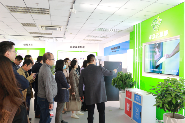 随后,营友们参观了金智孵化的高企——云思顿智能科技有限公司。云思顿致力于智能分类产品的研发及运营,旗下系列产品智能垃圾箱涉及市政、家庭、高端工业园区、高端商场、校园、高端小区、医院等等场景。创始人云曙先对每一个智能垃圾桶的用途娓娓道来,积分兑换、手摇式厨余处理器等产品均引起营友们热烈反响。