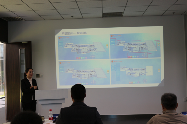 业务营销中心大客户部主管唐仕君向营友介绍智慧能源业务发展历史,并通过现场设备展示出金智能源业务在智能发电、智能变电、智能配电、综合能源服务、模块化变电站、电力设计和总包等多个领域的应用。