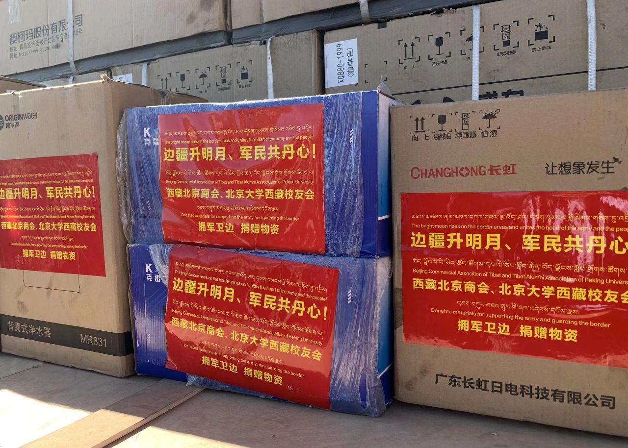 2020年国庆、中秋双节前夕,西藏自治区北京大学校友会及校友企业深入阿里地区对峙一线陆军某部,开展“边疆升明月、军民共丹心”的拥军捐赠活动;藉着国庆、中秋佳节时分,为该部队捐赠一大批大型净水设备、太阳能热水器、UPS蓄电池、冰柜、洗衣机、饮水机、强光手电等物资,向部队官兵送上月饼,诚心地向他们致上谢意和节日问候。