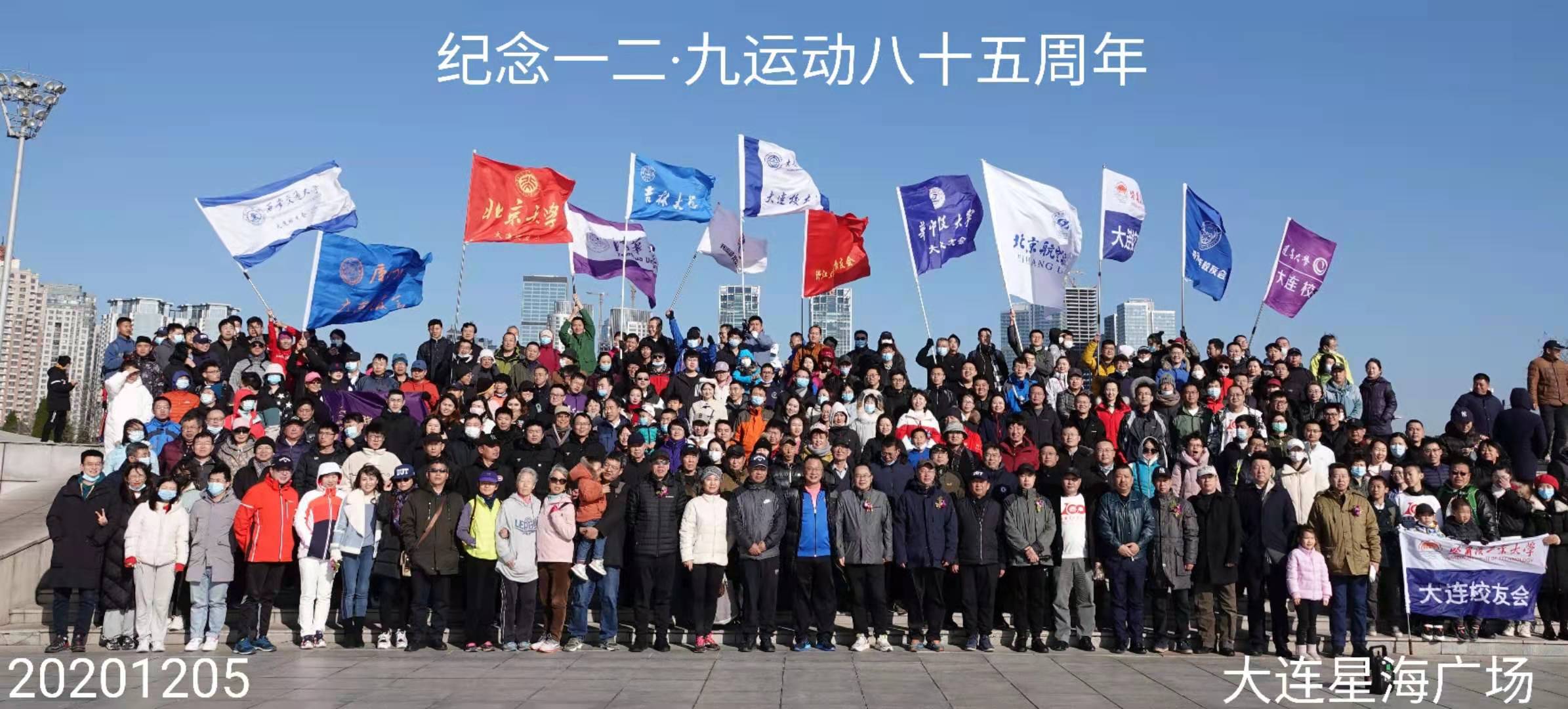 2020年12月5日上午,全国高校在连校友会在星海广场共同组织了以“弘扬爱国精神,携手扬帆起航”为主题的徒步活动,纪念“一二·九”运动85周年。