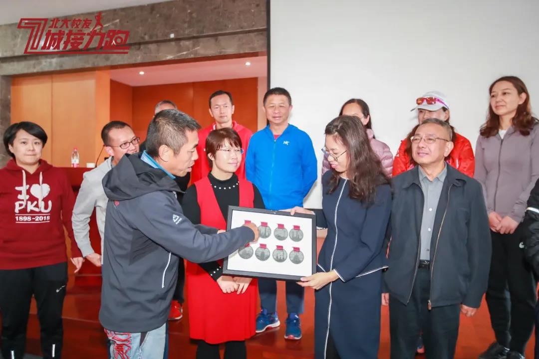 论坛最后,北大校友七城接力跑的发起人之一曹峻上台,为大家展示“勇战7站”的校友们在不同城市奔跑的精彩瞬间,并和校友们一起向北京大学校友会和亦庄经济科技开发区赠送纪念奖牌。伴随着北京站系列活动的顺利举行,本次接力跑活动圆满收官。