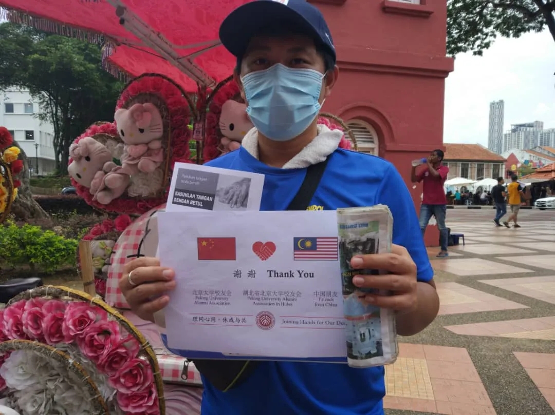 2020年6月27日,北京大学马来西亚校友会将其捐赠的16000只医用口罩发放给了马来西亚华社研究中心、陈嘉庚基金会、林连玉纪念馆以及马六甲一线从业人员和当地三轮车夫等弱势群体,“北大校友”成为当地群众和媒体的称赞的热词。