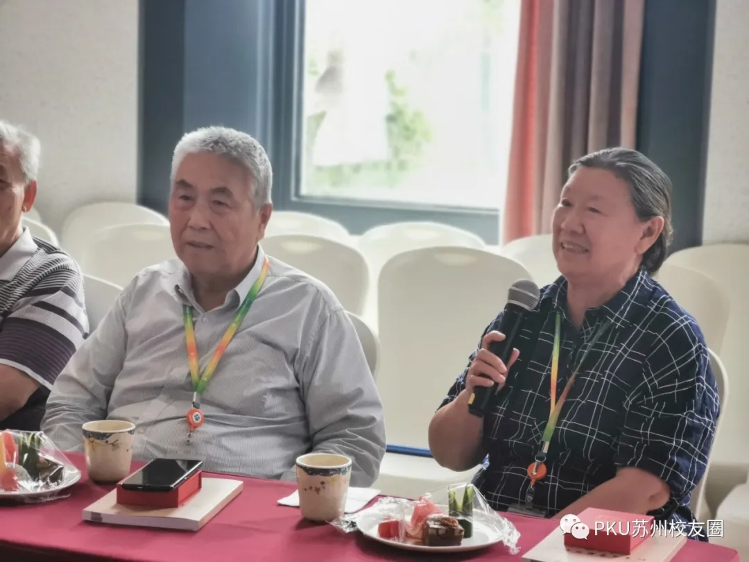 目前来自山东、北京、上海、美国等地的11位校友,其中4对伉俪,他们在考察比较各地养老机构后,选择了吴园休养。老校友们介绍了自己人生经历和从事的工作,他们当年分别就读于北大物理系、地质系、中文系、化学系、北京医学院。除了中文系张炯学长滞留北京,医学院学长赵淑兰因故未出席外,其他学长均参加了会议。