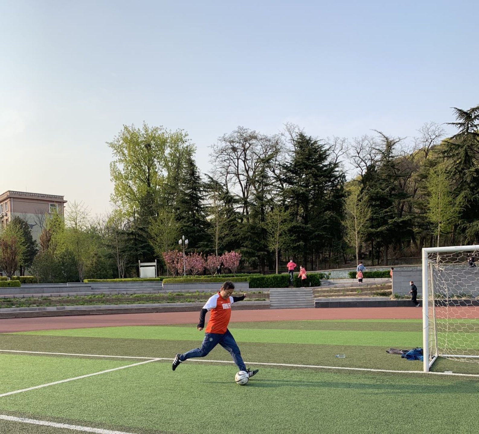二、疫情期间,北大校友足球联合会会长王惠德校友(79经济),身先士卒,坚持每天做运动、保持体能和技术,他曾经在尚有积雪的军事科学院足球场上,一个人慢跑、练习运球,并请家属拍摄照片和视频,发到北大校友足球群中,以此来鼓励和鞭策师弟们不要松懈。