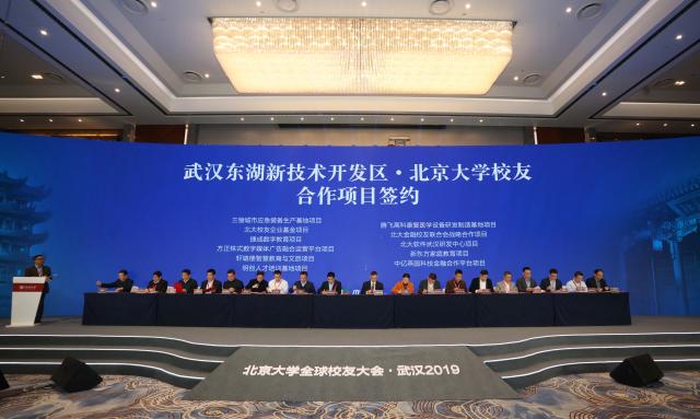 开幕致辞后,武汉东湖新技术开发区与北京大学校友合作项目签约仪式举行。