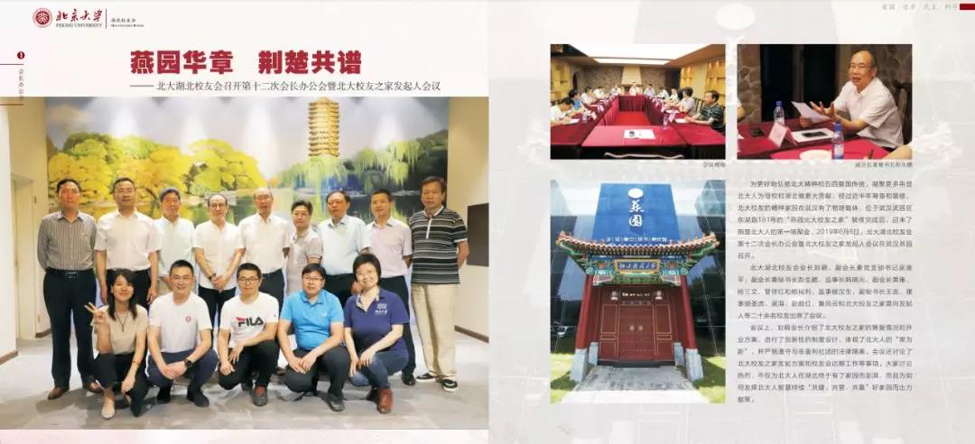 对北大湖北校友会来说,2018年和2019年是不平凡的两年,更是锐意进取和硕果累累的两年,不仅召开了多次会长办公会和理事会,举办了四次荆楚讲坛、六期教育沙龙和迎新送新活动,还启动了西南联大讲堂,未名诗社积极采风,举行了多次荆楚校友行,特别是武汉燕园“北大校友之家”的正式挂牌,成为了北大文化和精神的延伸地、承载地和集结地;贯穿着荆楚北大人集体智慧的会歌《荆楚北大情》,也再次修订完成,全新呈现给大家。