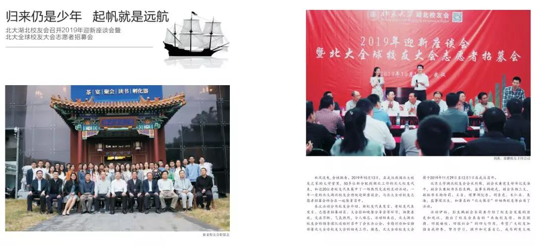 2019年11月25日,《荆楚北大人》第三期正式出版发行了,作为北京大学湖北校友会会刊,这本记载该校友会近期活动的刊物,以精美的装帧和精彩的内容,受到了广大校友和读者们的喜爱,为即将在武汉召开的北大全球校友大会献上一份礼物。