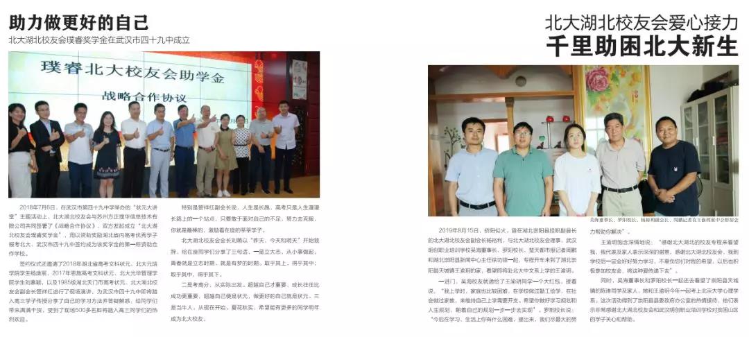 “肩负红楼担当,演绎知音情长,与子同窗报国荣光,荆楚共谱燕园华章。”这些难忘的历史性画面,不仅印在《荆楚北大人》一页页纸上,更印在了每一个荆楚北大人的脑海和内心深处,必将成为不可磨灭的记忆。