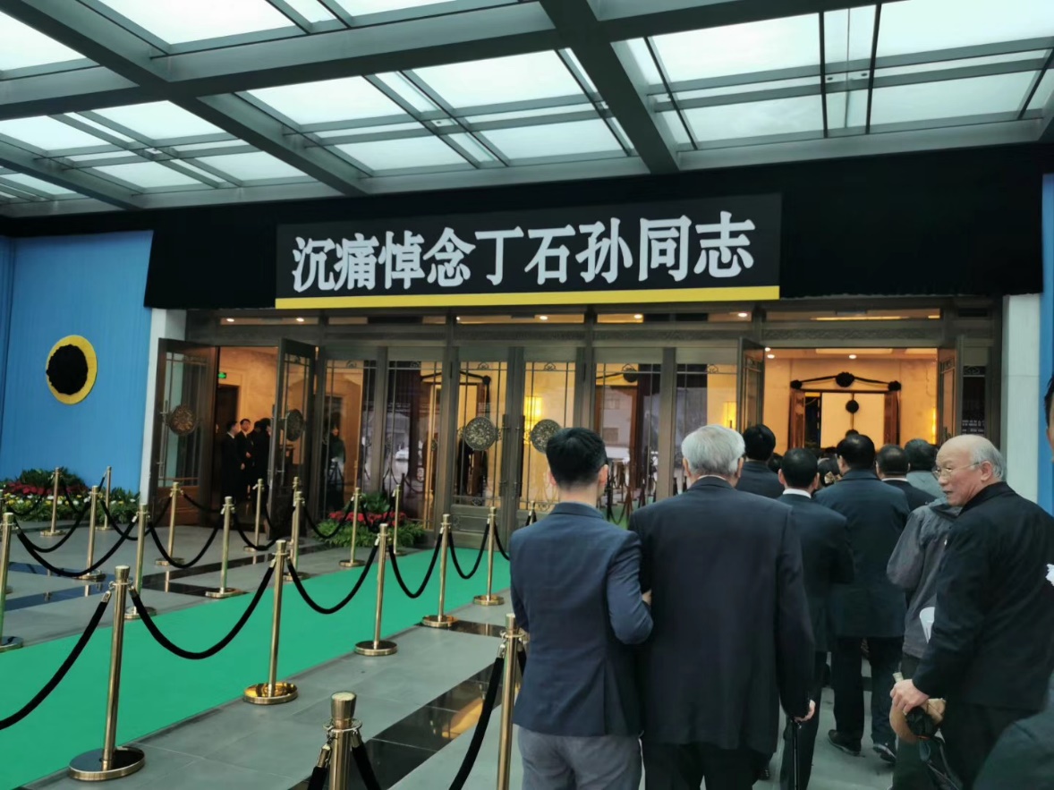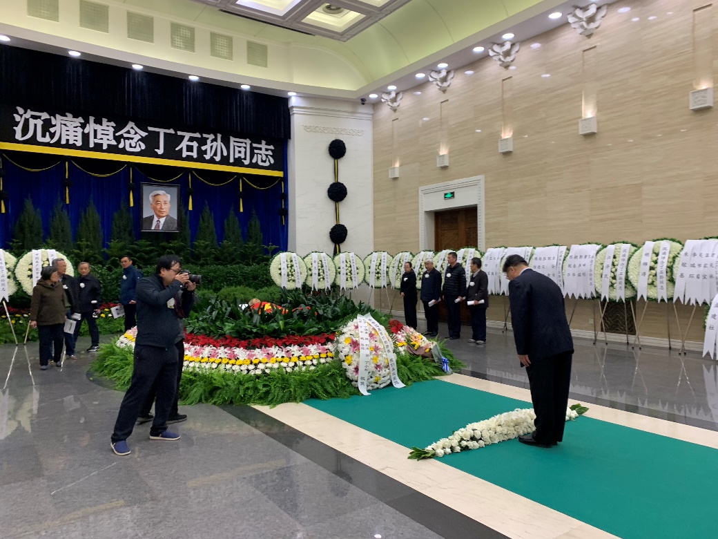 北京大学党委书记邱水平、校长郝平等,在哀乐声中缓步来到丁石孙同志的遗体前肃立默哀,向丁石孙同志的遗体三鞠躬,并与丁石孙同志亲属一一握手,表示慰问。
