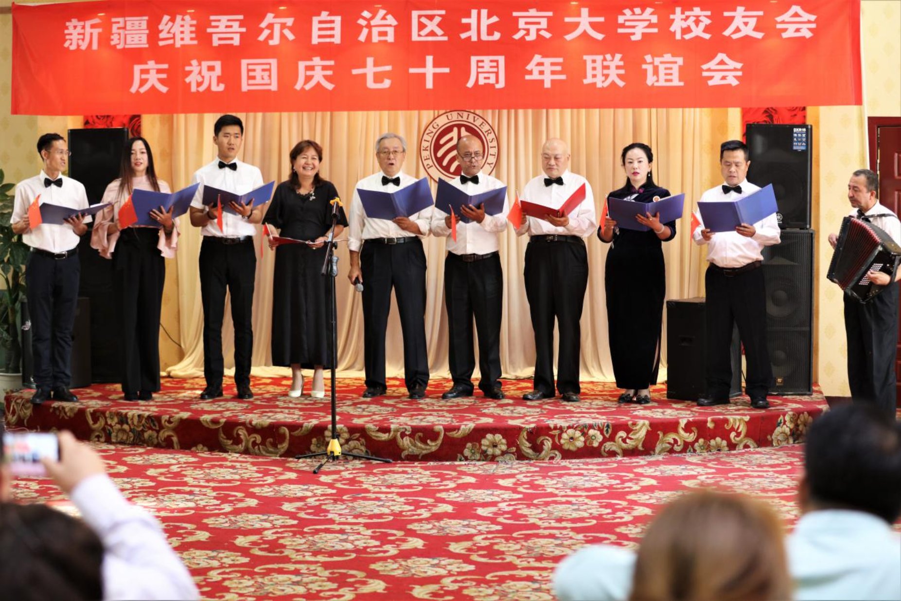 一位接受新疆北大校友会资助的少数民族小姑娘也来到了联谊会现场,同大家一起跳起了欢乐的麦西来甫。新疆北大校友会始终响应党中央号召,近年来一直致力于扶贫、帮困、助学等公益活动。为庆祝建国70周年,新疆北大校友会2019年已开展医学部的义诊、摄影家协会的助学、瞻仰烈士陵园和此次的联谊会活动,9月28日还将举办庆祝中华人民共和国70周年华诞摄影书法展,迎接伟大祖国的生日。