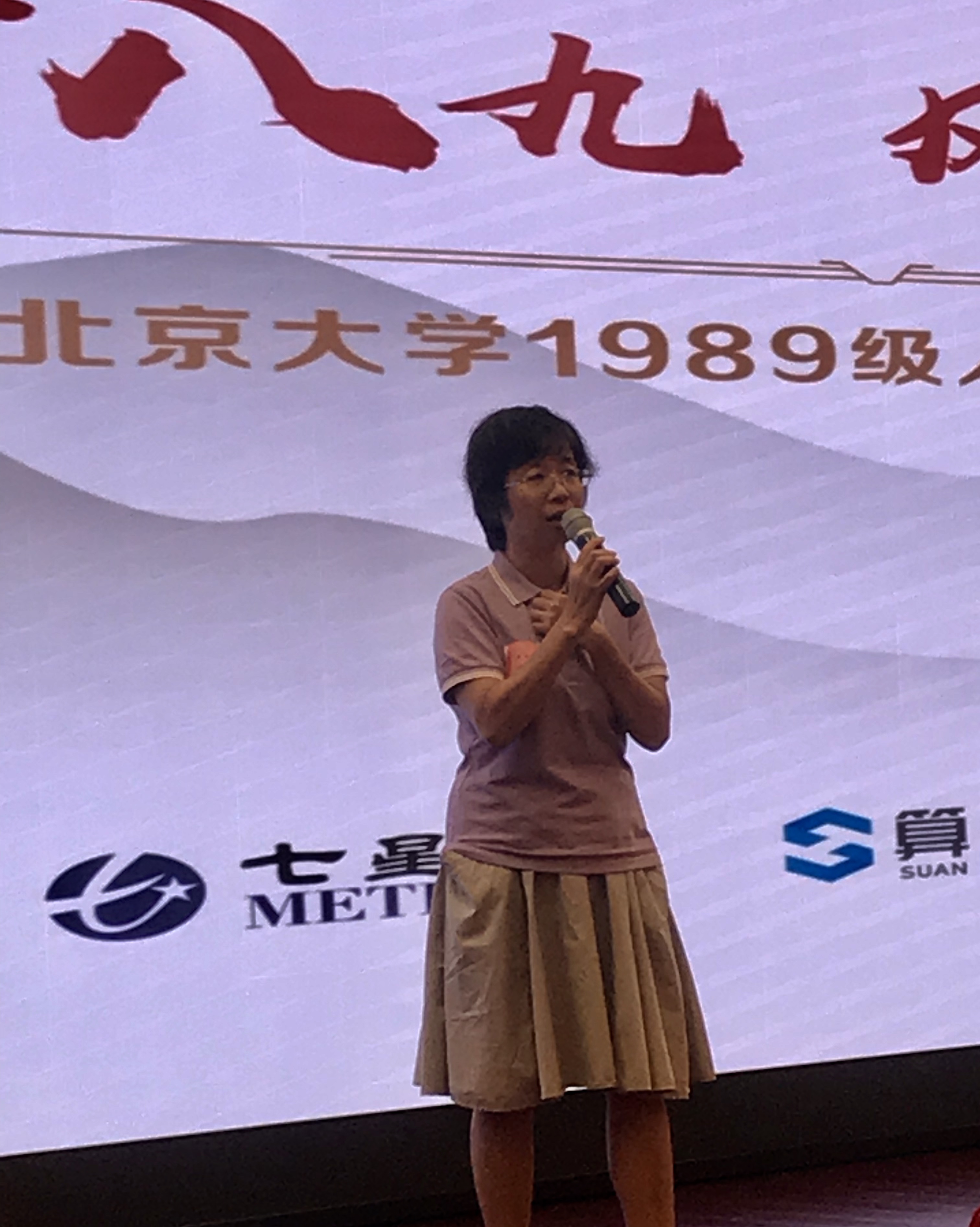 89级校友代表王芳(中文系)、蒋庆军(概率系)先后发言,向同学们分别讲述了自己毕业后的成长历程,表示感恩母校,不负北大之志。