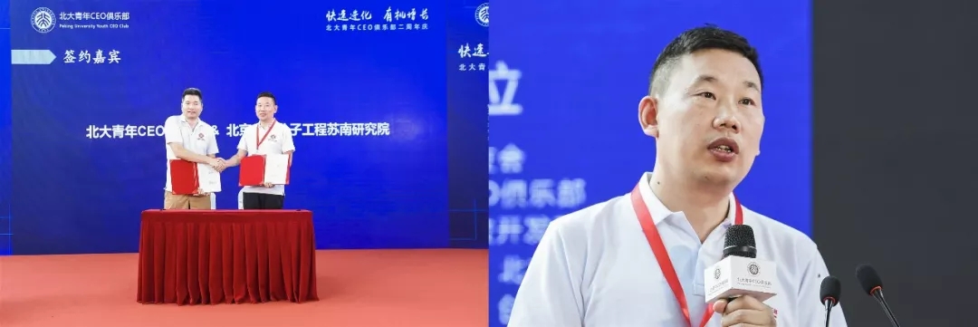 为进一步扩大北大青年CEO俱乐部的平台资源和影响力,在主论坛上,北大青年CEO俱乐部与创客总部、北京大学分子工程苏南研究院分别签署战略合作备忘录。之后,北大青年CEO俱乐部顾问、创客总部合伙人陈荣根,北京大学分子工程苏南研究院常务副院长焦天恕作为嘉宾代表发言,为北大青年创业校友赋能助力。陈荣根提出经过长征的红军能看到得天下,经过寒冬锤炼的团队能看到公司成功,建议创业者炼硬功夫、炼管理、炼团队,提高过冬能力。焦天恕则重点介绍了北京大学分子工程苏南研究院这个新机制下的新机构,欢迎大家去常熟考察,希望为大家创业提供全方位支持。