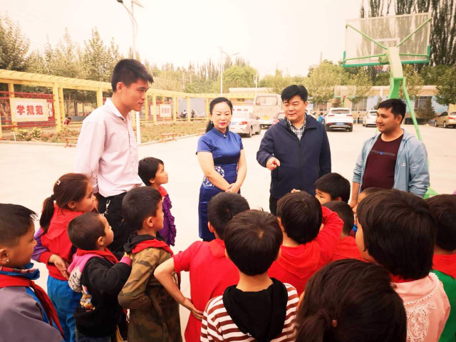 新疆维吾尔自治区北京大学校友会携手深圳狮子会簕杜鹃服务队为新疆维吾尔自治区高级人民法院驻村点——和田地区深度贫困县墨玉县吐外特乡中心小学的575名小学生赠送每人一套校服及其他体育用品,总价22万余元。