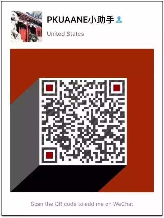 如希望加入校友会群组,请扫描下文二维码添加PKUAANE小助手为好友并备注姓名及北大就读时的年级、专业加群。
