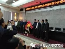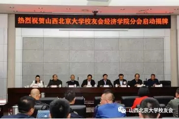 春雨绵绵、凉风习习!5月12日山西北京大学校友会和北京大学经济学院迎来了一件大喜事,山西北京大学校友会经济学院分会揭牌启动大会在山西省小企业发展促进局三层会议室隆重举行,出席揭牌仪式的有原山西省人大副主任胡苏平、北京大学经济学院原院长晏智杰教授、夫人刘晓华教授、北京大学经济学院副院长张亚光、北大校友山西大学校长黄桂田、北京大学校友会监事长聂海舟学长、山西北大校友会顾问徐志仁;山西北大校友会会长范晋生、山西省小企业发展促进局局长李东洪、副局长冯志山、张会荣;北京大学经济学院高级管理教育EDP中心副主任王娣、郭曼老师;山西北大校友会常务副会长兼秘书长李日平、副会长任健荣、山西北大助学慈善基金理事会副理事长梁东胜、副秘书长周峰及百余名校友参加了活动。