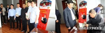 早上八时山西北京大学校友会顾问、经济学院老学长徐志仁早早就到会场签到处将其求学北大、奉献山西的人生经历浓缩到其自传《北大成就我的快乐人生》为参会校友题写寄语,将精心撰写的书赠校友。