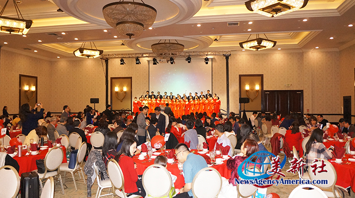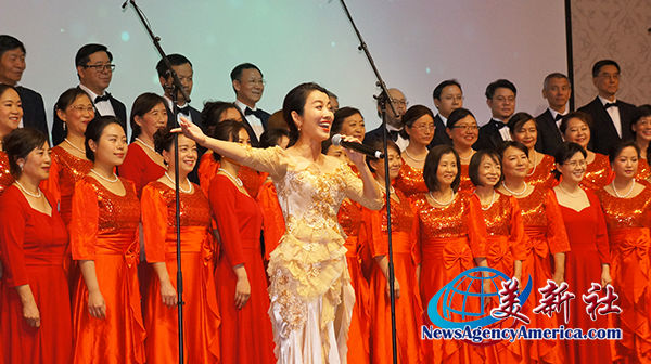 北大南加州校友合唱团、美国雅歌合唱团、麦穗音乐工作室等合作演唱《大地飞歌》、《传奇》,为晚宴拉开帷幕。