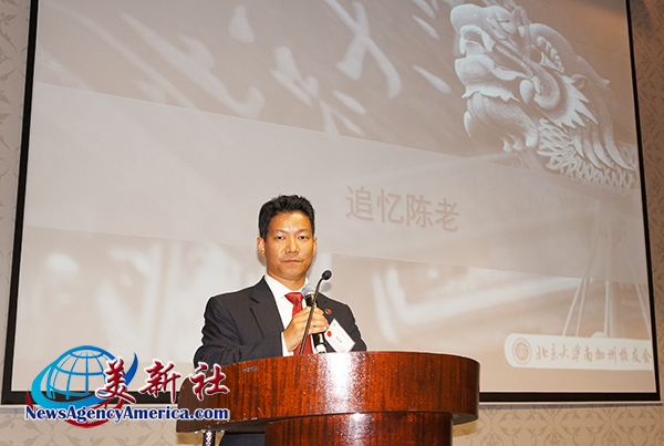北京大学南加州校友会会长徐蕾欢迎各界来宾的莅临,并表达对大家的感谢。