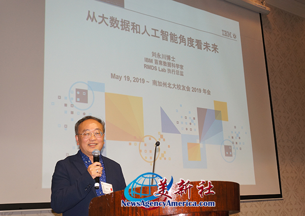 IBM首席数据科学家刘永川则为来宾们做《从大数据和人工智能角度看未来》主题演讲。