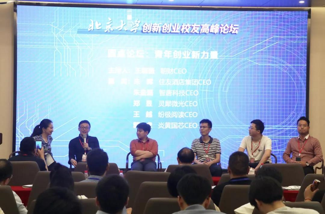 随后,举行了主题为“青年创业新力量”的圆桌论坛。圆桌论坛由朝财CEO王朝薇主持,住友酒店集团CEO朱晖、智唐科技CEO 朱垒磊、灵犀微光CEO郑昱、纷极阅读CEO王越、炎黄国芯CEO郭虎参加圆桌论坛。各位嘉宾从自身出发,分享了各自的创业经验,并就创业的看法、对青年创业者在创业过程中遇到的问题、青年创业者创业的优势和劣势、对时代的担当和责任等问题发表自己的意见。各位嘉宾精彩的讨论和独特的见解为现场的校友们带来了新的思路。
