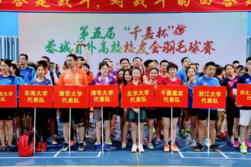 2019年5月18日,由南京大学四川校友会主办的第五届“千嘉杯”省外高校校友羽毛球赛在成都谦九龙羽毛球馆举行,共有20只省外高校校友代表队参赛,1只嘉宾代表队受邀参赛,北大四川校友会羽毛球俱乐部15名队员组队参赛。