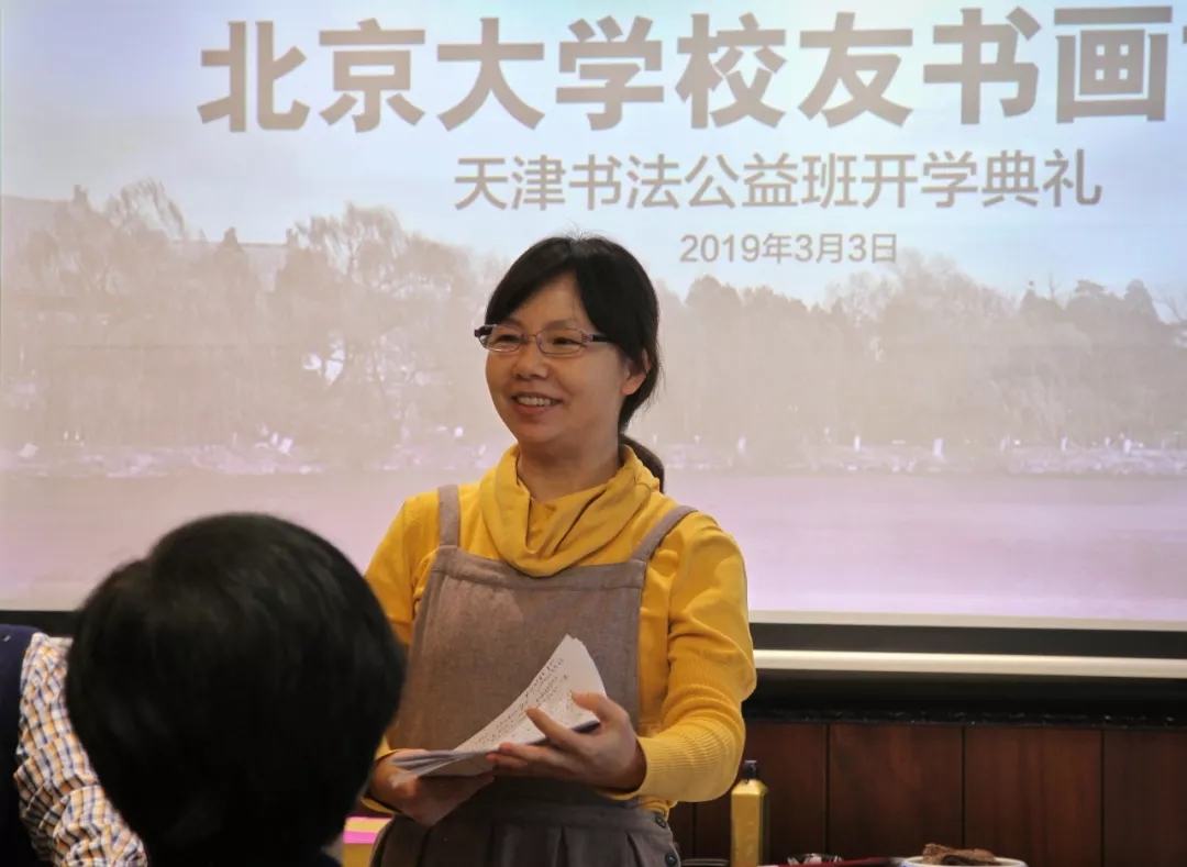 担任天津书法公益班班主任的张艳老师,是去年12月从北大校友书画协会首期书法公益班结业的优秀学员。