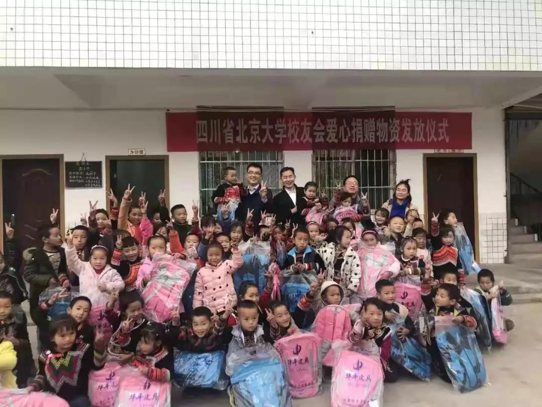 11月16日,简单质朴的“四川省北京大学校友会爱心捐赠物资发放仪式”在马边彝族自治县劳动乡笆子房村小学举行,为校友会爱心扶贫捐赠活动画上圆满句号。笆子房村小学的61名孩子们每人还得到了一份心仪的礼物——北京大学四川校友会专门送去的书包和文具。小凉山寒气袭人,但小学校园里却处处洋溢着温暖和喜悦。