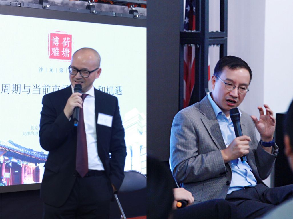 叶曦先生和胡剑博士首先就当前美国金融市场的信贷周期,以及美国货币政策及财政政策对周期产生的影响进行了讨论。两位嘉宾均分享了自己独到的分析架构以及深入的观点看法。两人的看法相互印证又互有补充,让在场的校友们获益匪浅。两人的讲话也展现了北清各自的文化特点,一时间在场校友都仿佛重新回到了燕园和清华园,和师友一同谈经论道。