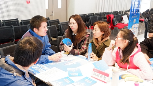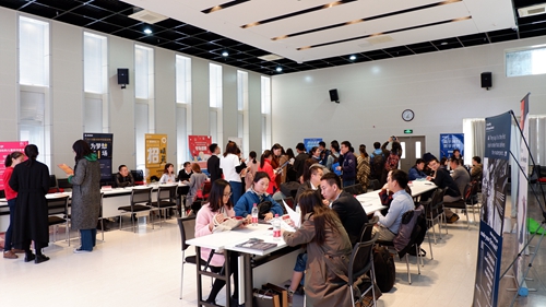 在随后进行的企业宣讲环节上,12家校友企业代表分别介绍了自己企业的基本情况和招聘需求。许多企业的宣讲形式丰富多彩、生动有趣,极具感染力,现场气氛十分热烈。虽然只有短短5分钟的宣讲,但是校友企业的活力和热情仍然感染了在场的同学们。在午餐交流会上,同学们积极地向自己感兴趣的企业创始人和HR提问交流,收获了许多宝贵的人生经验。除此之外,校友企业也为大家提供了大量优质的工作岗位,希望可以助力于同学们的职业规划和选择。午餐交流会后,同学们向自己感兴趣的企业详细面谈并投递简历,约定面试事宜。