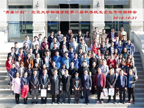 10月27日上午,“青藤计划”•北京大学物理学院第二届秋季校友企业专场招聘会在物理学院思源报告厅举行。物理学院党委副书记董晓华、校学生就业指导服务中心副主任吕媛、物理学院团委书记贾方健、院校友办负责老师吴施雨、院就业工作负责老师商小琦、物理学院企业界校友代表及在校师生约两百人出席了本次招聘会开幕仪式。