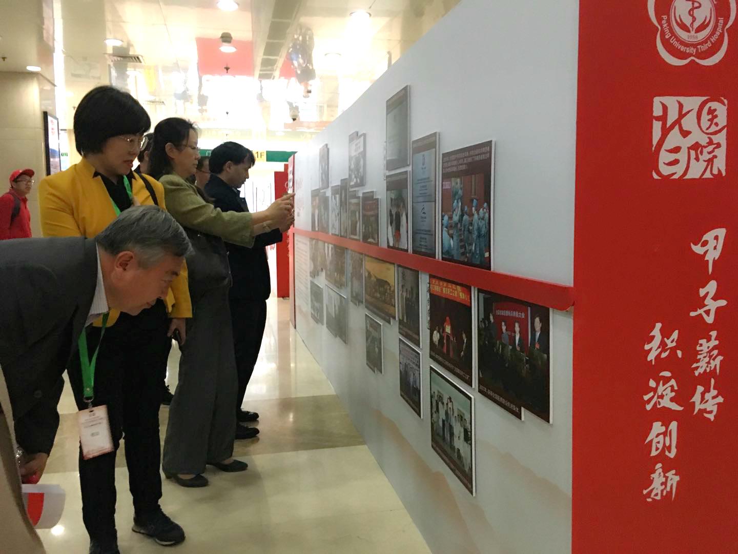 在北医三院门诊楼大厅,校友跟随1958-2018的展板,追溯一甲子的历史。