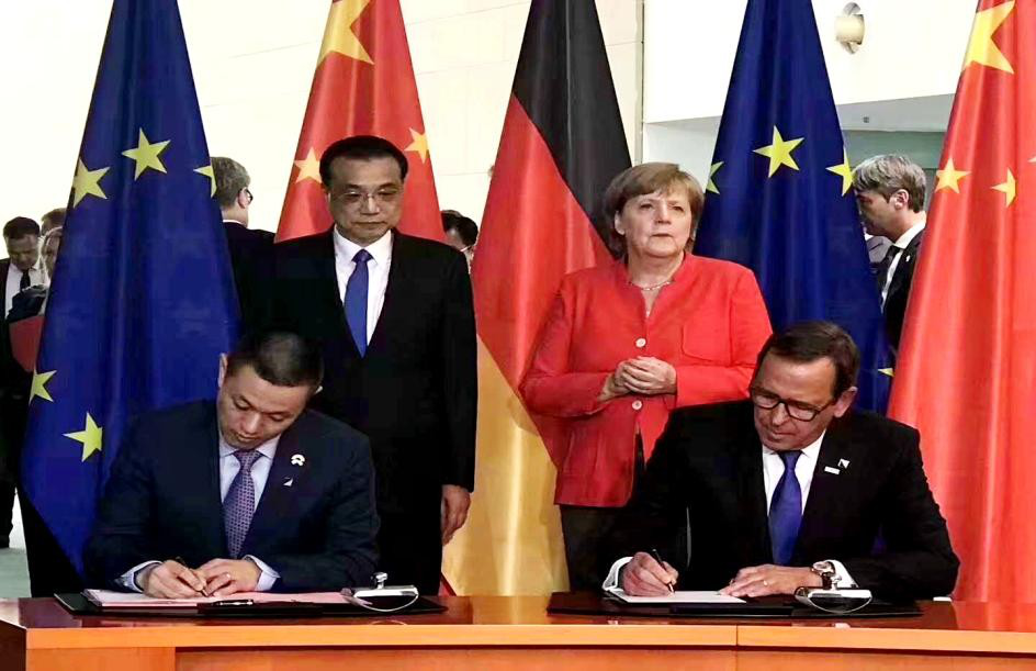 第二天北大校友企业蔚来汽车在中德两国总理的见证下,与Bosch集团签署了合作协议。
