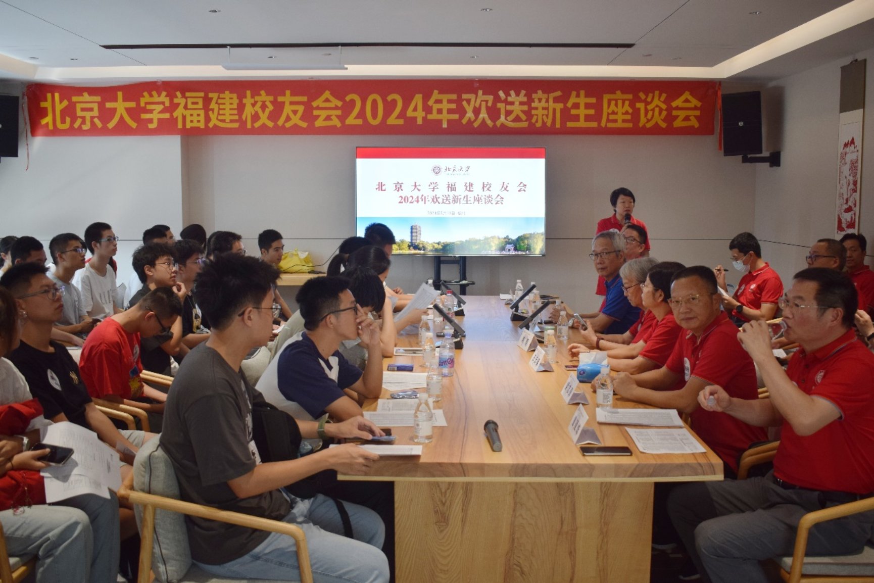 2024年8月11日,北京大学福建校友会“北大人之家”谈笑风生,掌声阵阵。在闽老校友与来自八闽各地的46名北大新生代表欢聚一堂,祝福他们即将飞入燕园,开启激情绚烂、丰富多彩的大学生活。