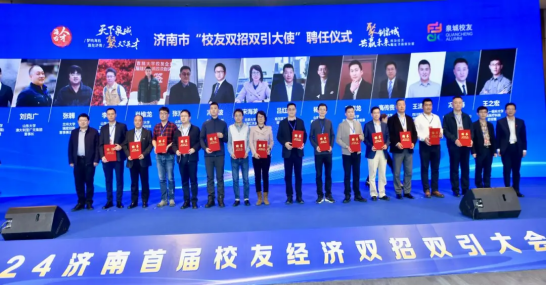 活动现场,为北京大学校友、长江国际控股集团董事长、湖北省北京大学校友会会长刘萌,北大纵横管理咨询公司创始人、北京纵横联合投资公司董事长、北京大学校友创业联合会会长、全国工商联人力资源委员会常务秘书长王璞、吉林大学校友、中科未来首席科学家周萱等7名专家、知名企业家颁发“海右伯乐”聘书。为北京大学校友、上海汇天金投资公司董事长宋海英、哈尔滨工业大学企业家联谊会常务副会长、北京德威智泊科技有限公司董事长吕红军等15名优秀校友颁发济南市“校友双招双引大使”聘书。