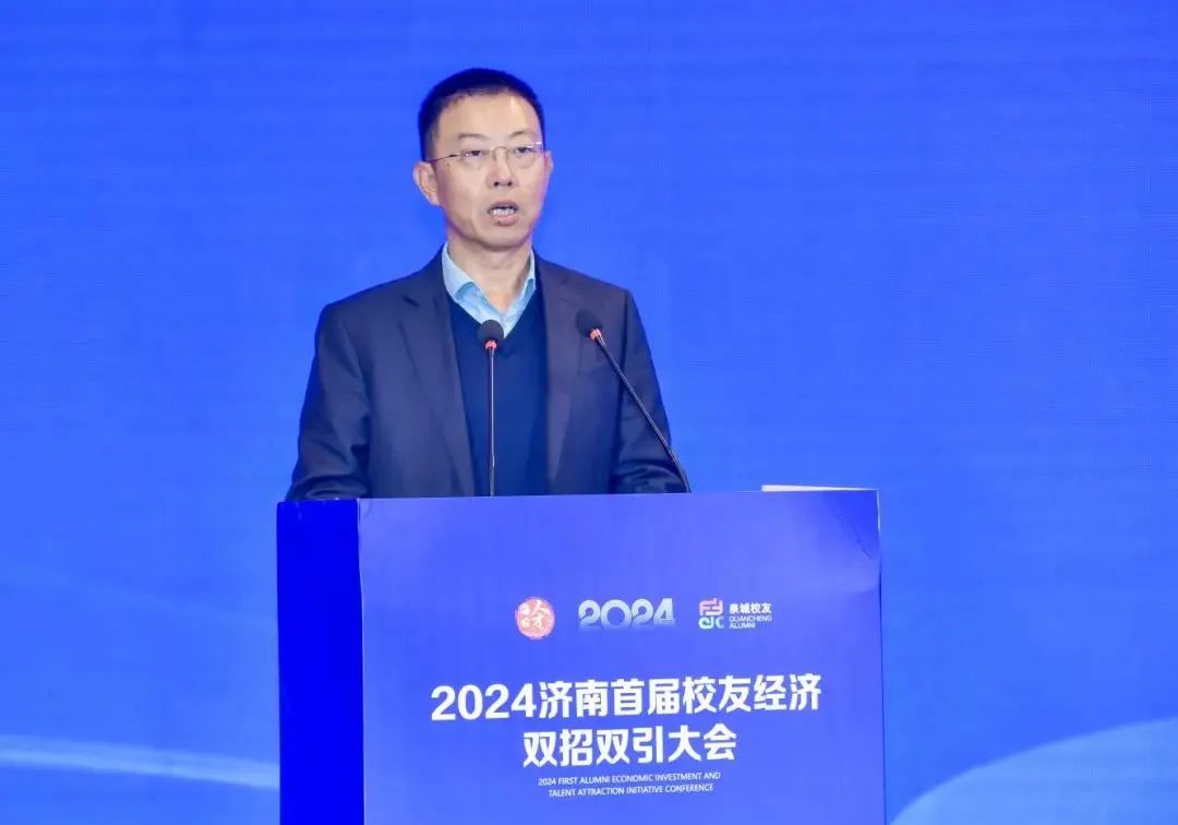 杨峰在致辞中表示,校友经济作为一种独特且充满活力的经济形态,正日益彰显出强大的驱动力和旺盛的生命力。发展壮大校友经济,既寄托着广大校友的拳拳赤子心,也承载着济南这座千年古城的殷殷期盼,更是校友与泉城双向奔赴、互相成就的合作平台。希望广大校友充分利用各自优势和影响,围绕资源共享、价值共创、发展共赢,大力发展校友经济,助推济南经济腾飞跃升;依托泉城得天独厚的资源禀赋和发展优势,创造更多的合作共赢契机,助力广大校友搭乘济南发展快车,实现自我成就与社会贡献的双飞跃、双丰收。济南将坚持“没有最好只有更好”理念,为大家创新创业提供全周期、定制化、一站式综合服务,做大家最坚强的“后盾”和最温暖的“港湾”,让广大校友归来省心、留下安心,发展更有信心。相信此次活动必将对济南“招才引智”、加快强省会建设产生重要的推动作用。