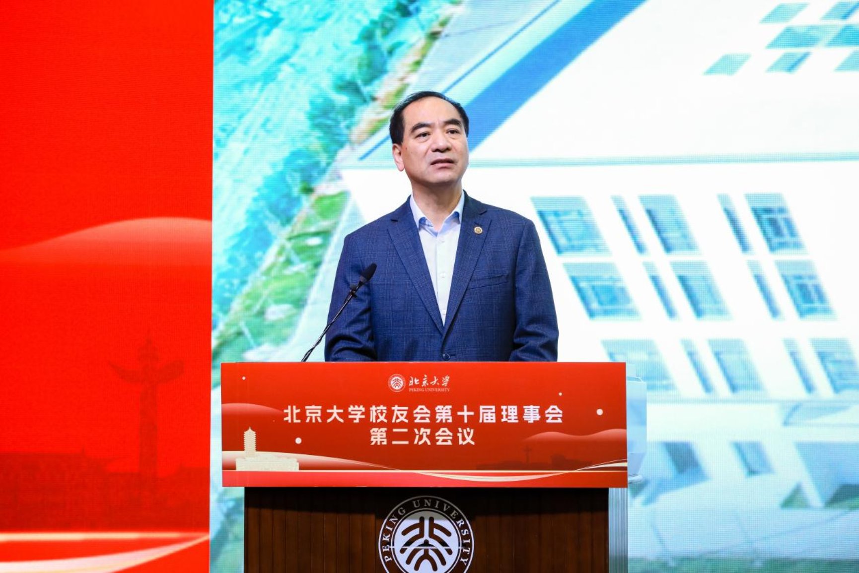 龚旗煌向关心并支持学校发展的广大校友表示问候与感谢。他介绍了学校发展建设的最新情况,学校坚持以习近平总书记关于北大的重要论述精神为指引,培育拔尖创新人才、打造高素质教师队伍、健全科技文化创新体系、深化国际国内交流合作、营造优质校园环境,在建设中国特色世界一流大学的新征程上迈出了坚实步伐。他回顾了过去两年北大校友工作取得的可喜进展,并向全体理事提出三点期望:做校友工作的领航员、做母校事业发展的贡献者、做推进中国式现代化的主力军,在中国式现代化的广阔天地中展现北大人昂扬向上、创先争优的精神面貌。