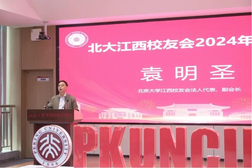 北京大学江西校友会法人代表袁明圣副会长介绍了校友会概况,他详细介绍了北大江西校友会近四十年来的发展历程和建设现状,他表示,北大江西校友会是江西最早一批注册成立校友会的高校组织,在历届会长与现任温会长的带领下,在会长团队及所有校友的共同努力下,校友会取得了令人瞩目的成绩,校友会大家庭先后登记有600多名成员,成为校友们联络情感、交流学术、事业合作、互帮互助的纽带和精神家园,他呼吁广大校友积极参与校友会的各项活动,聚资出力,奉献智慧,续写北大人在赣的新篇章。
