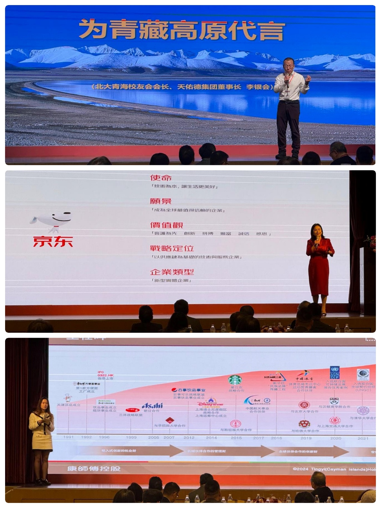 主题演讲环节,与会嘉宾从不同领域的专业视角,分享了发展趋势、产业脉动、社会责任与可持续发展的最新见解。青海省北京大学校友会名誉会长李银会分享了青稞在青藏高原经济社会发展中的作用;京东港澳台采销总监汪芸校友分享“一带一路”跨境电商发展经验;康师傅高级公关经理李伟分享了如何通过电子化的环境、社会与治理理念促进企业可持续发展。