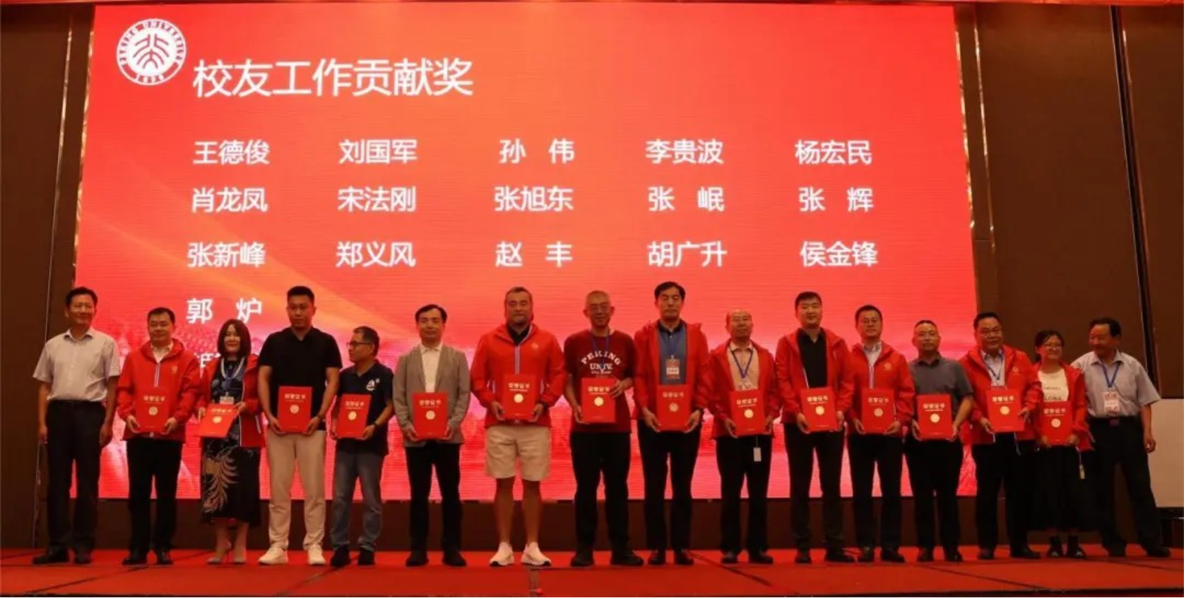 领奖校友从左至右分别是:宋法刚、王德俊、孙伟、郑义风、张新峰、张岷、郝光彦、杨宏民、胡广升、李贵波、侯金锋、郭炉、黄伟、肖龙凤