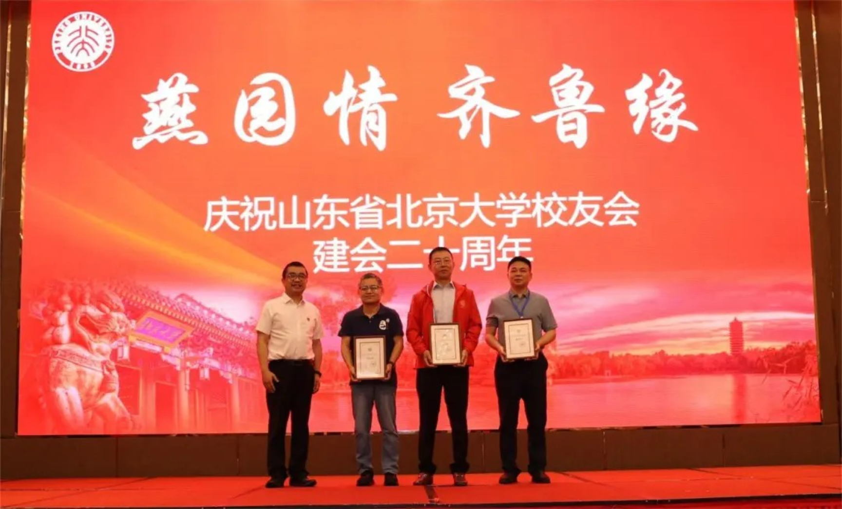 2024年6月16日,“燕园情 齐鲁缘”庆祝山东省北京大学校友会建会二十周年大会在济南银丰华美达酒店成功举办。山东省北京大学校友会于2004年6月经山东省民政厅批准,同年10月宣告成立,是山东省民政厅进入21世纪以来正式批准的第一个具有法人资格的省外高校社会团体组织。二十年来,山东省北京大学校友会从无到有、由弱到强,秉承“联谊校友、服务山东、回报母校、奉献社会”的宗旨,为山东经济社会发展贡献了北大人的智慧和力量。