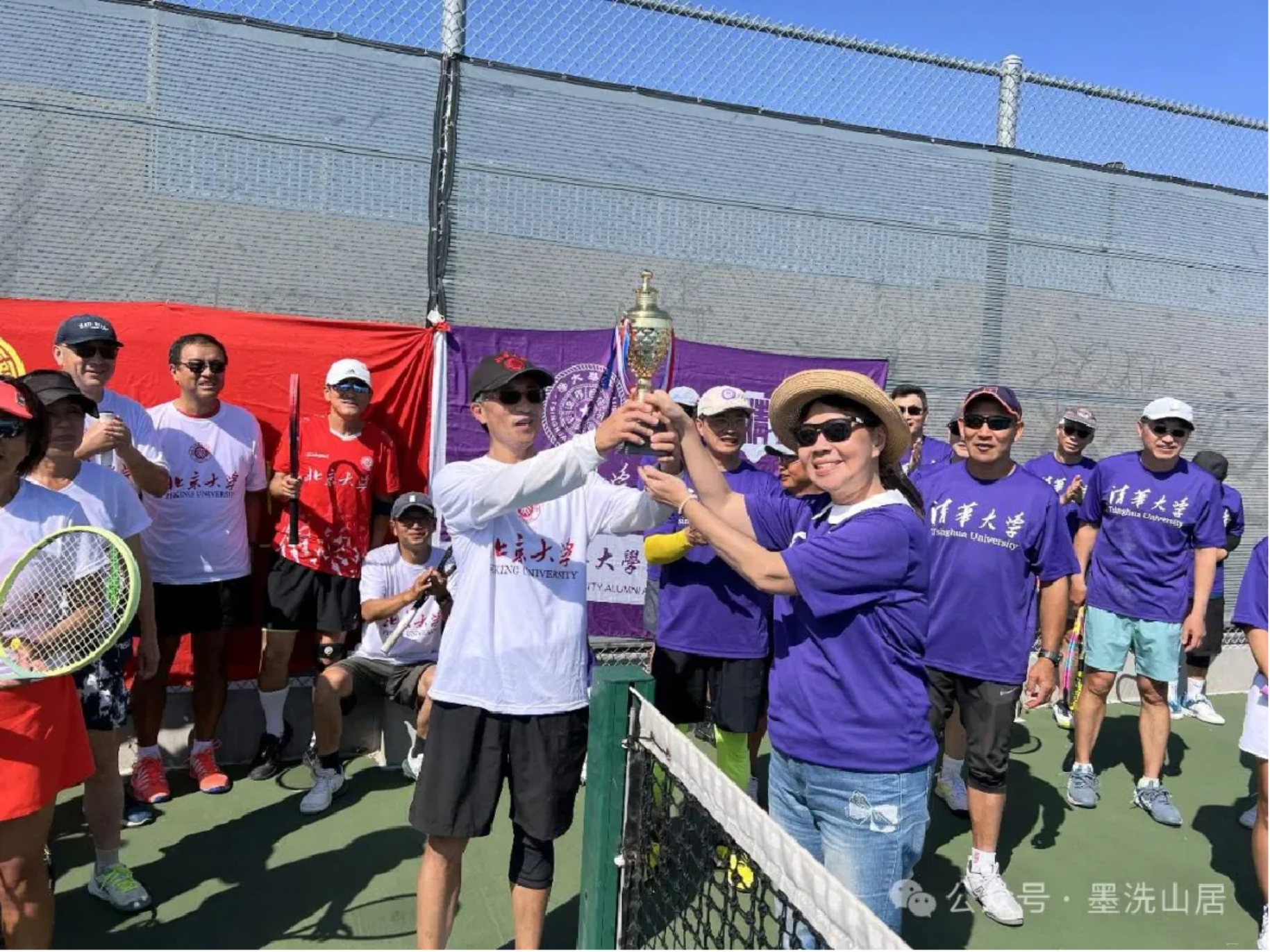 2024年6月1日,由旅居在加州的北京大学南加校友网球队与清华大学南加校友网球队共40余人齐聚尔湾,举行了首届“京华杯”北大清华校友网球友谊赛。双方各选出八人,组成四对双打阵容,采取车轮大战,从正午开始以大循环方式逐一对决,战况激烈。3轮12盘战后,双方打成平手。比赛结果在最后一刻才得以揭晓——清华大学以2局的微弱优势取得了对抗赛的胜利。