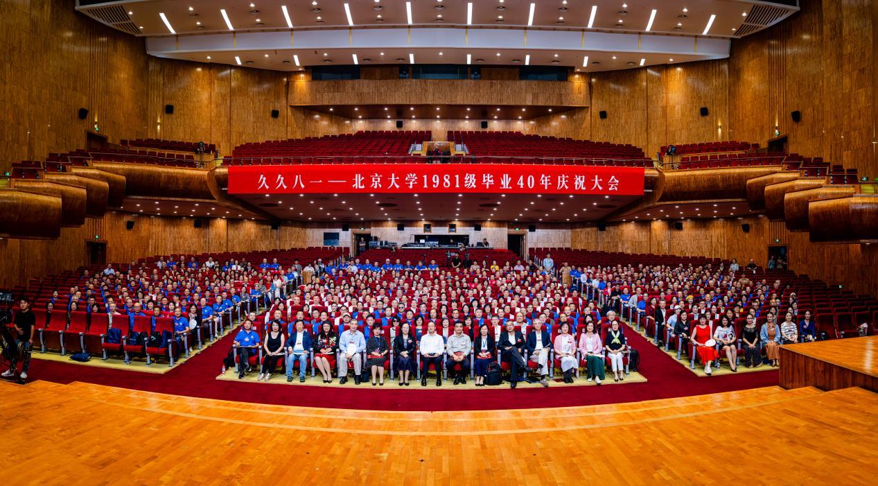 在百周年纪念讲堂观众厅,“久久八一——北京大学1981级毕业40年庆祝大会”举行,来自22个院系的500余位1981级本科生校友重聚校园。会前,校领导与筹备组亲切会面,并与校友共聚一堂。