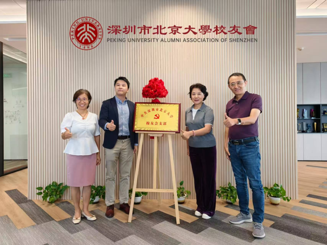 随后,朱虹、白文涛、王芳与新当选党支部书记刘龚熠,共同为深圳市北京大学校友会党支部揭牌。