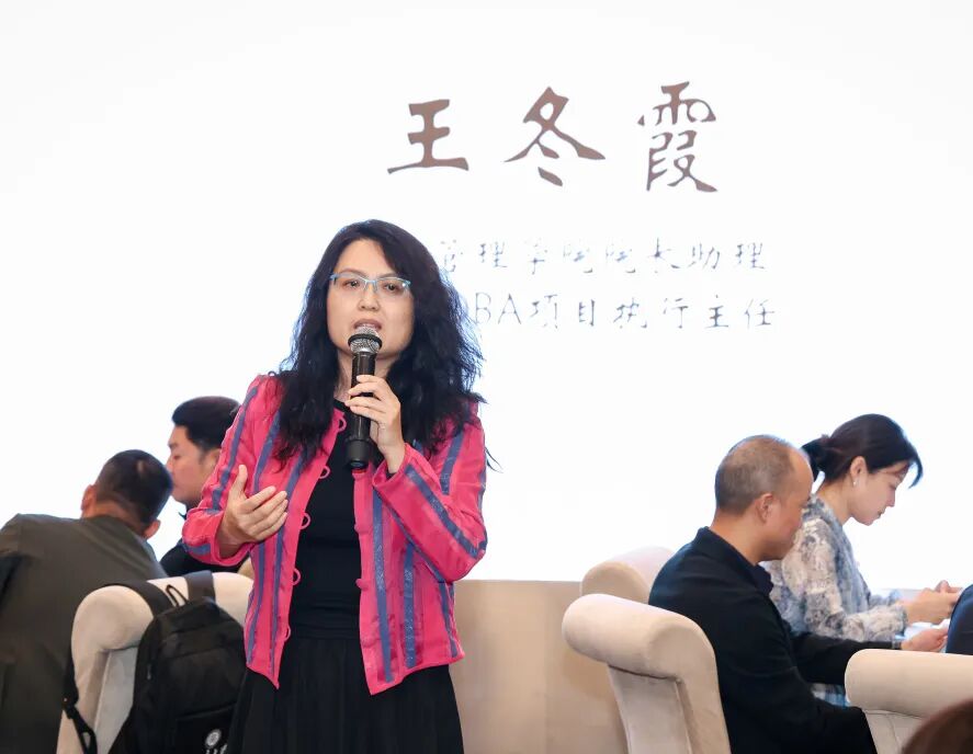 学院院长助理、MBA/DBA项目执行主任王冬霞简要分享了MBA、DBA项目的特色与发展近况,强调项目将持续致力于培养具有全球视野与社会担当的商界领袖。
