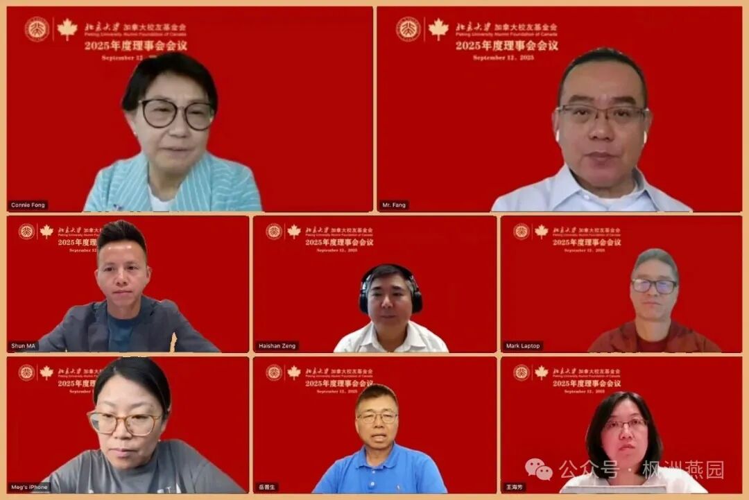 Peking University Alumni Foundation of Canada(中文注册名称:北京大学加拿大校友基金会;英文简称:PKUCanada)2025年度理事会会议,于9月12日以视频电话会议方式举行。